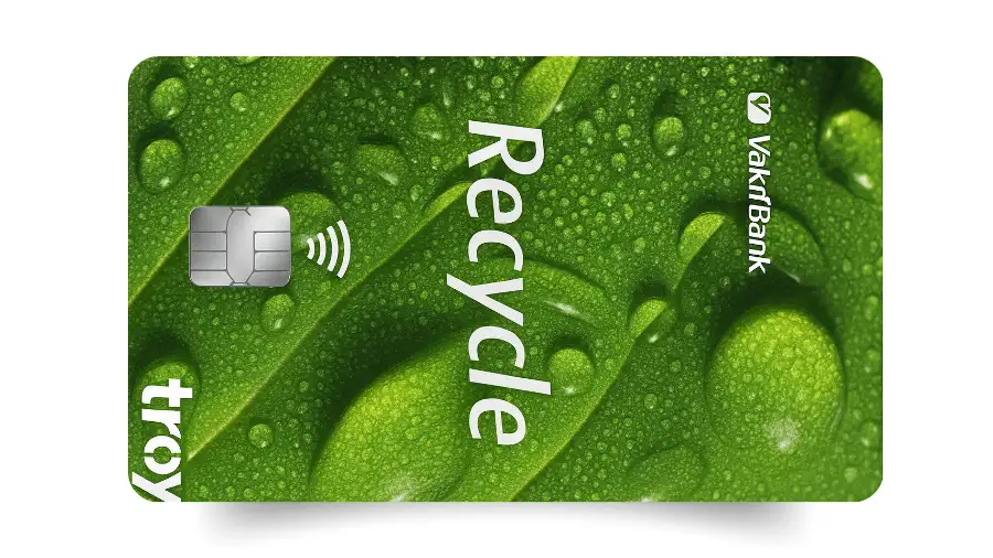 VakıfBank Recycle Card, geri dönüştürülebilir malzemelerle üretilen çevreci yapısı ve teknolojik özellikleriyle sürdürülebilir yaşamı destekleyen bir kredi kartıdır. Alışverişlerinizi hızlı, güvenli ve doğaya zarar vermeden yapmanıza olanak sağlar.